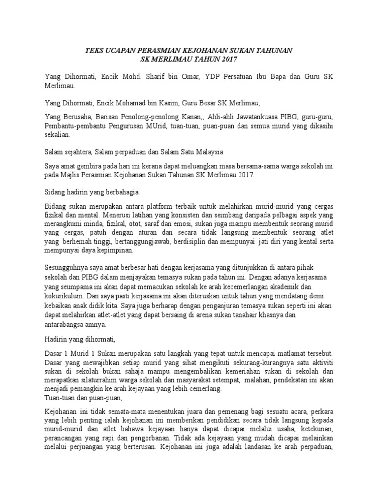 Teks Ucapan Perasmian Sukan Tahunan Sekolah Pdf